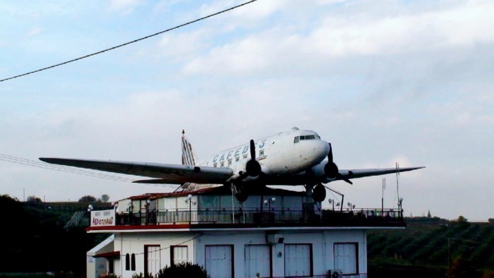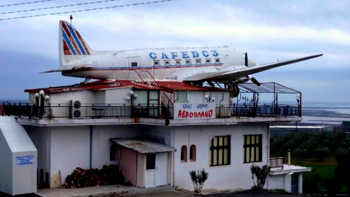 Ήταν στα τέλη της δεκαετίας του ’80 όταν το περίφημο «Καφέ αεροπλάνο» αποτελούσε την αγαπημένη καλοκαιρινή εξόρμηση οικογενειών και ζευγαριών που περνούσαν ώρες ατέλειωτες στο αεροσκάφος που βρέθηκε προσγειωμένο σε ένα διώροφο κτίριο στο 43ο χιλιόμετρο Θεσσαλονίκης – Κατερίνης, στο Αιγίνιο Πιερίας και ορατό από την εθνική οδό.